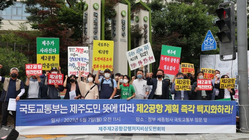 2015년 제주 제2공항 건설사업 발표 이후, 제2공항을 둘러싼 제주도민사회의 갈등은 극에 달했습니다. 2021년 2월 사회적 합의와 약속을 통해 진행된 제주 제2공항의 찬반을 묻는 제주도민 대상 여론 조사가 진행되었으며 결과는 '제주 제2공항 반대' 였습니다.