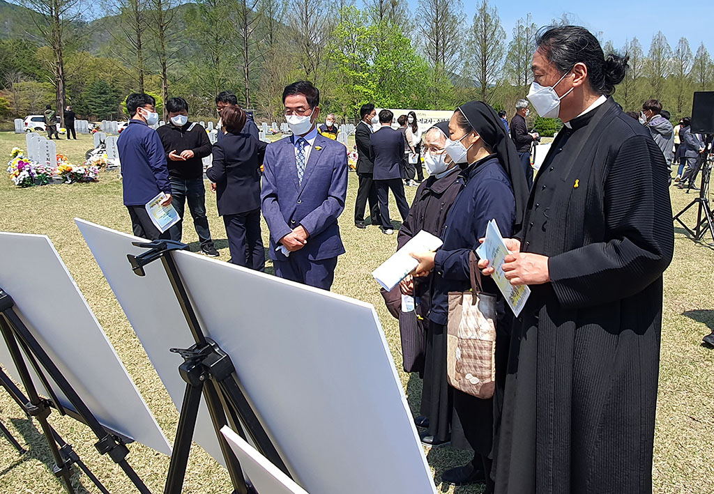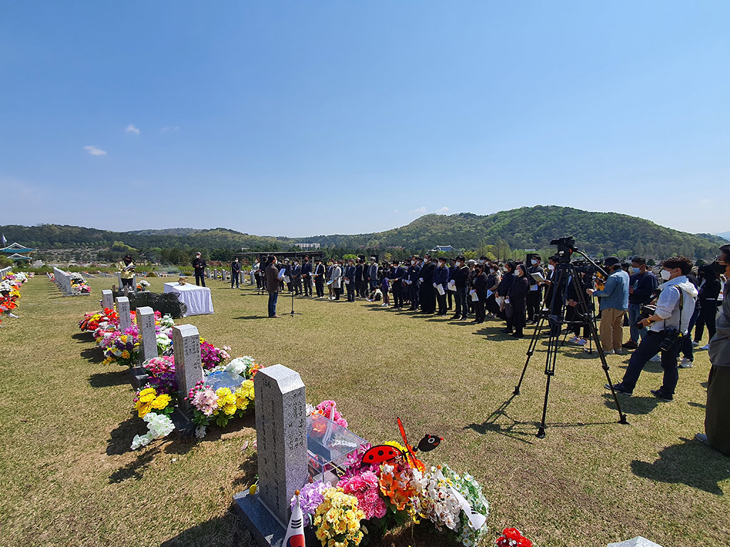 천주교대전교구정의평화위원회는 2022년 4월 16일(토) 오전 11시, 세월호 참사(2014.4.16.) 8주기를 맞이하여 대전현충원에서 개최된 <세월호 순직교사.소방관 기억식>에 참석했다. 천주교사회복음화국장 겸 대전정평위원장인 김용태 마태오 신부와 위원들은 대전시의 후원과 대전시민단체의 주최로 대전현충원 순직공무원 묘역에서 개최된 <기억식>에 참가하여, 순직교사 및 소방관을 기억하며 헌화하고 합동 참배했다.