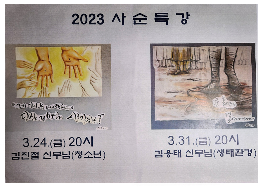 대전 둔산동 성당, 2023.3.31.(금) 오후 7:30, 미사 후 특강