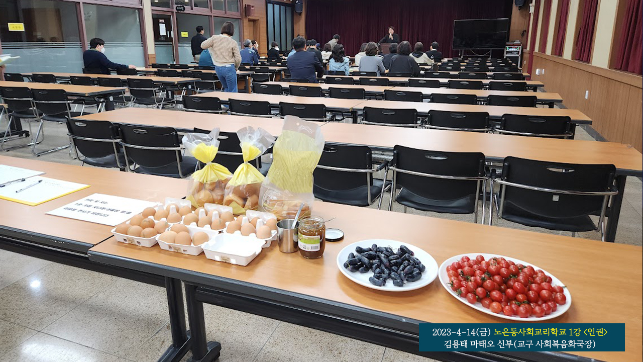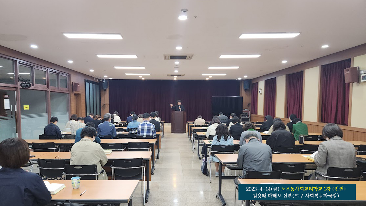 천주교 대전교구 정의평화위원회(대전정평위)는 2023년 4월 14일(금) 오후 7시 40분 노은동 성당에서 제35기 사회교리학교를 시작했다. 총 10주간 진행되는 이번 사회교리학교의 첫 강의는 행사를 주관하는 대전정평위 위원장 김용태 신부(대전교구 사회복음화국장)가 맡았고, <인권>을 주제로 약 110분간 강의했다. 수강을 신청한 31명의 신자들은 2시간 남짓한 짧지 않은 시간에도 강사와 수강생들이 서로 호응하며 열띤 분위기 속에서 진행되었다. 다음은 강의 전문이다.