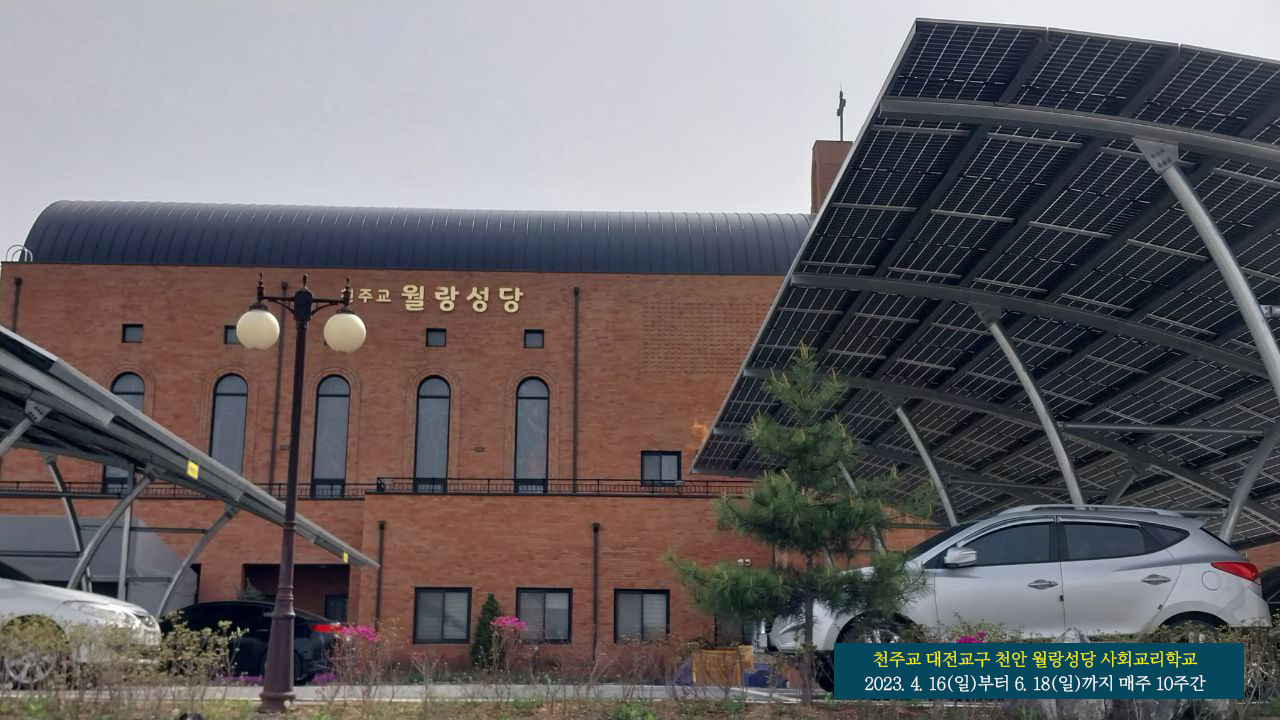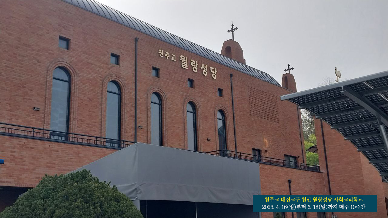 천주교 대전교구 정의평화위원회(대전정평위, 위원장 김용태 대전교구 사회복음화국장)는 오늘부터 10주간 천안 월랑 성당에서 제36기 사회교리학교를 개최한다고 밝혔다. 월랑성당 사회교리학교는 기존의 사회교리학교의 방식을 탈피하여 교중미사가 열리기 전 전 신자를 대상으로 약 50분의 특강 형식으로 진행된다.