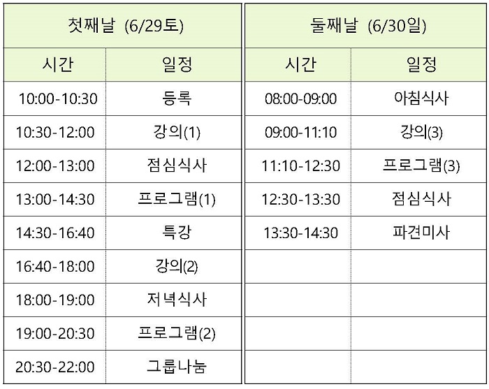 6/29(토)~30(일) 1박2일, 대전 지족동 새얼센터에서 개최