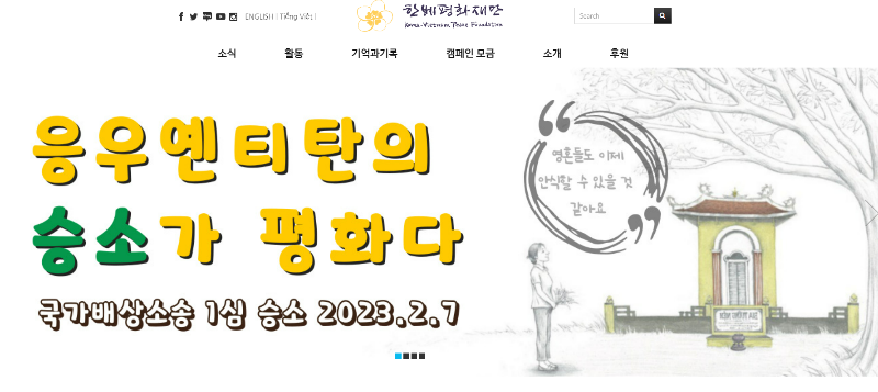 한베평화재단은 2023년 2월 8일(수) 홈페이지를 통해 최근 2월 7일(화), 한국군에 의한 베트남전의 민간인 학살과 관련하여 피고 대한민국을 상대로 제기한 국가배상소송 1심 선고에서 승소한 사실을 알리고, 이에 대한 입장문을 발표했다.