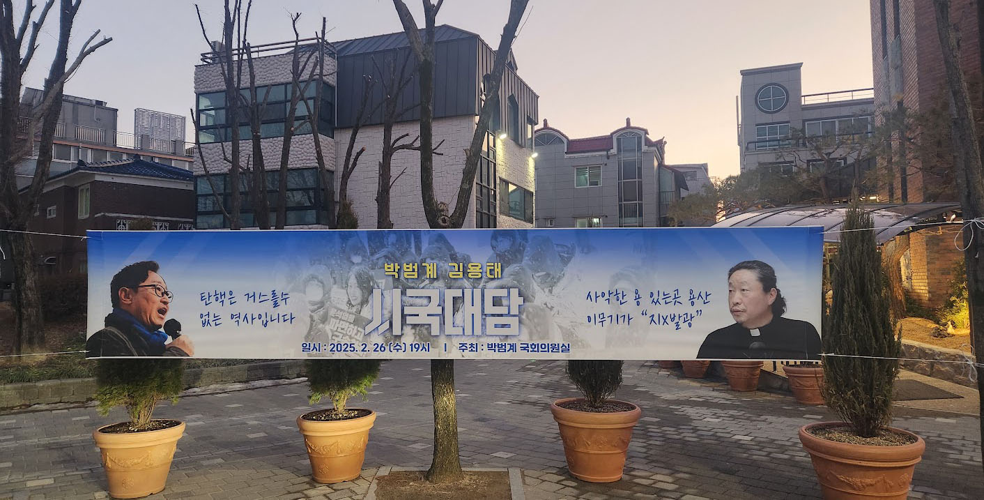 천주교 대전교구 정의평화위원회 위원장 김용태 마태오 신부는 2025년 2월 26일(수) 저녁 7시, 대전 월평동 성당에서 박범계 의원과 함께 시국 대담을 가졌다, 이 자리에서 김용태 신부는 "신부의 역할과 정치 참여에 대해 일부 보수 세력으로부터 "정치적 발언을 하지 말라"는 비판을 받고 있지만, 정치는 공동선을 실현하는 가장 큰 형태의 사랑"이라고 강조했다. 자세한 내용은 아래 참조